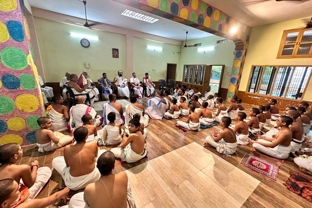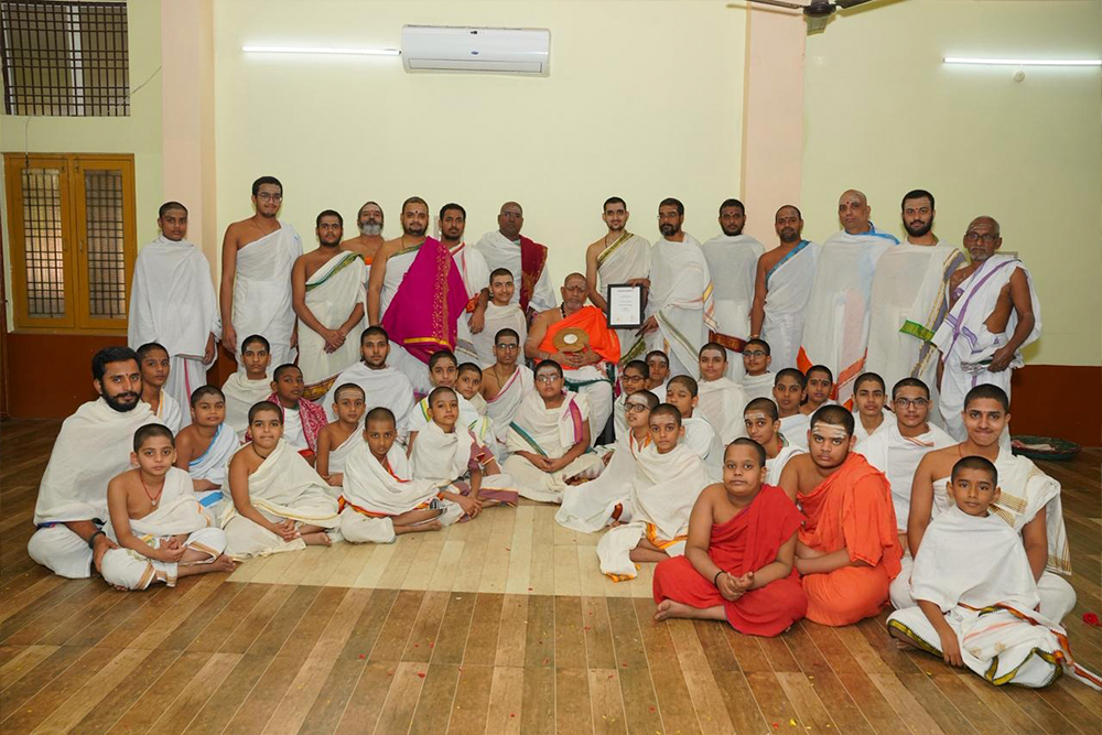 श्री दत्तात्रेय वेद विद्या गुरुकुलम्, राजमहेन्द्रवरम्, परमपूज्य आचार्य श्री प्रद्युम्नजी महाराज के पावन करकमलों से ‘भारतात्मा उत्तम वेदविद्यालय पुरस्कार’ प्राप्त करते हुए।